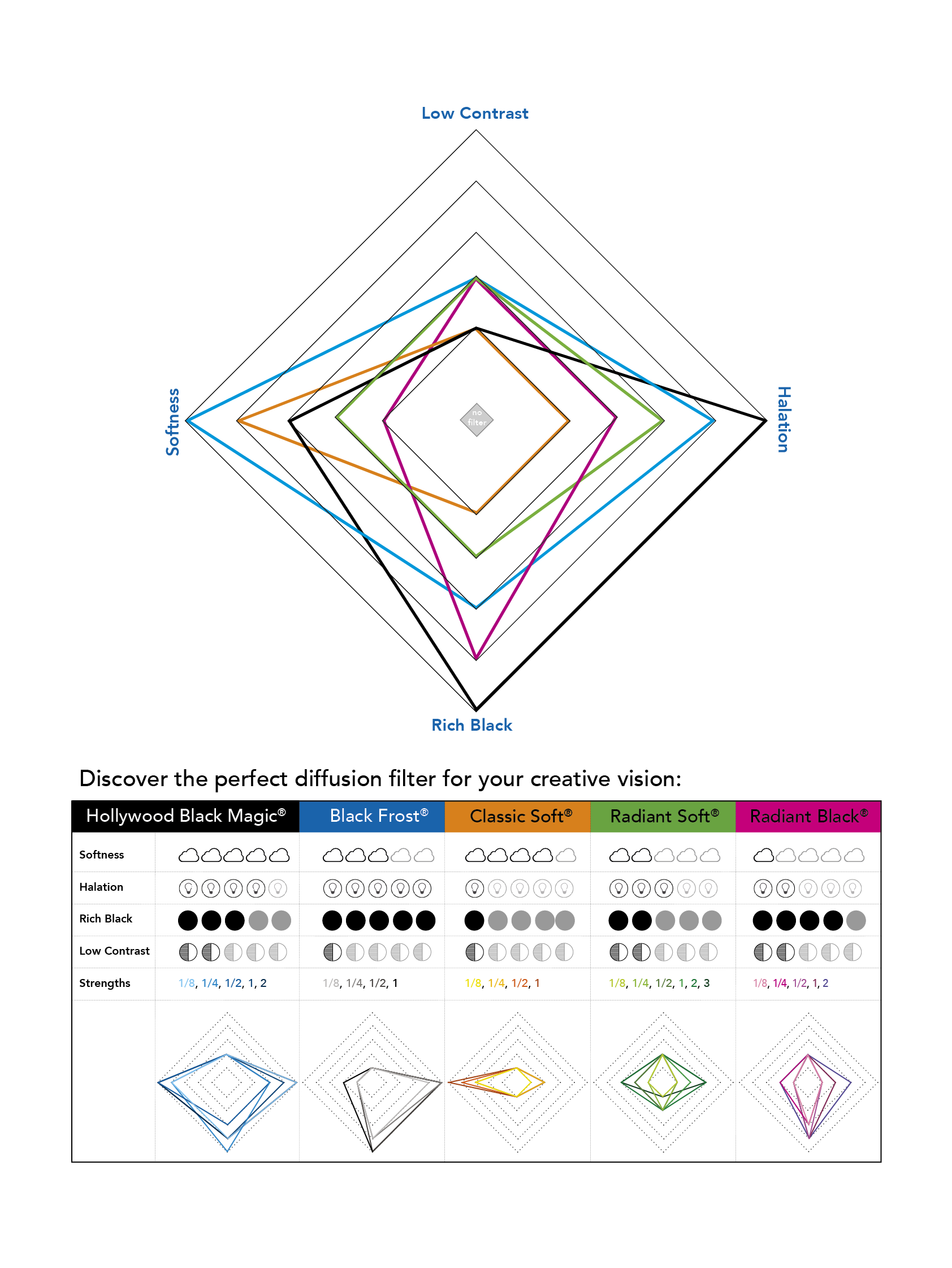 Hollywood Black Magic filters give a look similar to Tiffen Black Pro Mist. Highlights appear halated, the image is softened slightly to help remove any 'digital edge' and blacks remain rich.